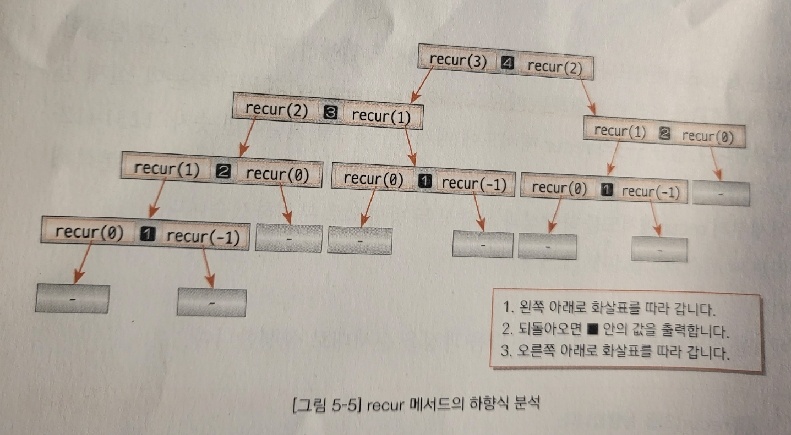 recur(n - 2) 부분 다시말하면 현재 매개변수에서 2를 뺀 값으로 메서드를 다시 시작
