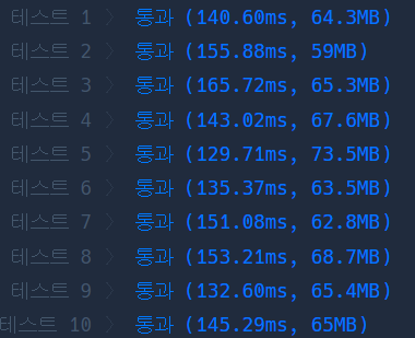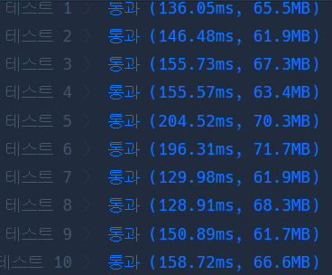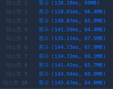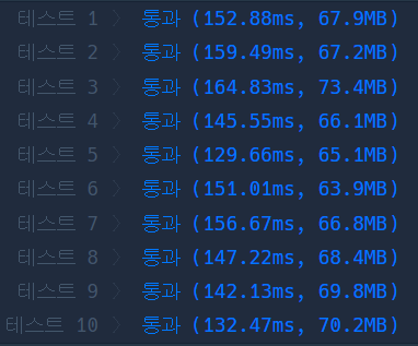 문제를 풀 당시에는 이렇게 중첩으로 풀지 않았기에 사실 생각보다 프로그래머스에서 수행시간이 빨라서 당황스러웠다....